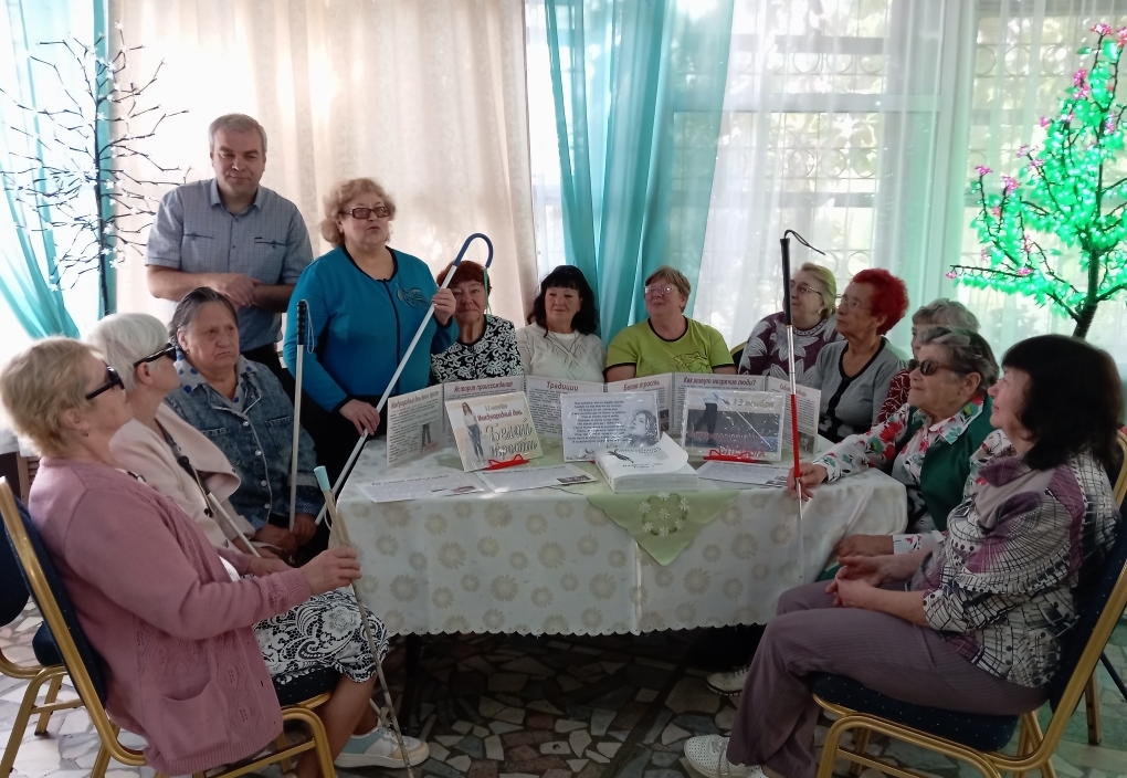 В рамках месячника ежегодной Всероссийской акции «Белая трость» сотрудником Городской центральной библиотеки для местного отделения ВОС был проведён час общения «Мир на кончиках пальцев». Она рассказала собравшимся об истории Дня белой трости, почему именно белая трость стала символом незрячего человека. Также познакомила с книгами на языке Брайля, имеющимися в библиотеке. Среди присутствующих оказались те, кто изучал эту технику чтения для незрячих, и они наглядно продемонстрировали, как нужно читать. Было рассказано и показано, как правильно пользоваться тростью людям с ограничением зрения. В ходе мероприятия собравшиеся вспоминали различные интересные факты из жизни незрячих людей, о знаменитых людях с ограниченными возможностями, об огромных проблемах, с которыми сталкиваются слепые и слабовидящие люди.