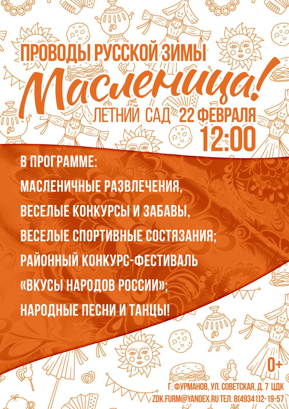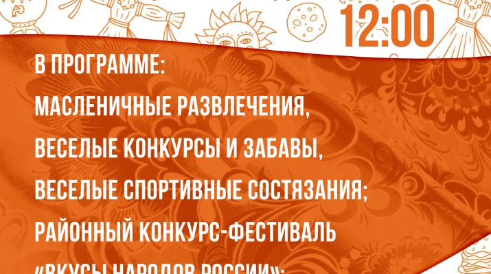 Все дружно будем танцевать и водить хороводы, принимать участие в традиционных масленичных играх и забавах. Самые смелые могут попробовать свои силу и выносливость, залезть на масленичный столб – и себя показать и подарок получить.
