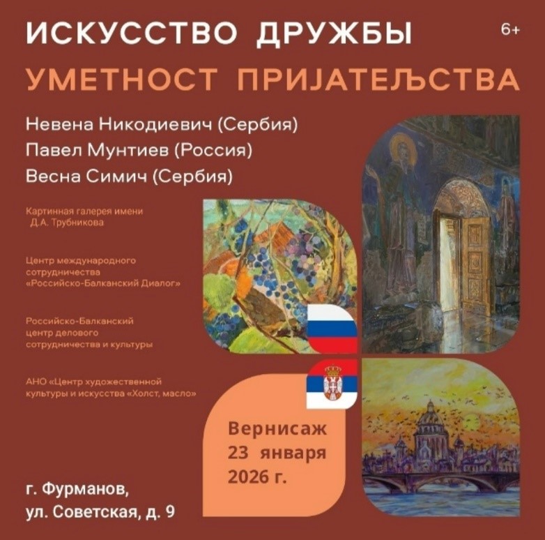 АНО «Центр художественной культуры и искусства «Холст, масло» представляет живописные работы художников Невены Никодиевич и Весны Симич из Сербии и Павла Мунтиева из России (Санкт-Петербург). В экспозиции зритель сможет увидеть городской и сельский пейзажи, натюрморты, портреты. Все работы объединяет искренняя, неподдельная любовь к природе, истории и дружбе наших стран.