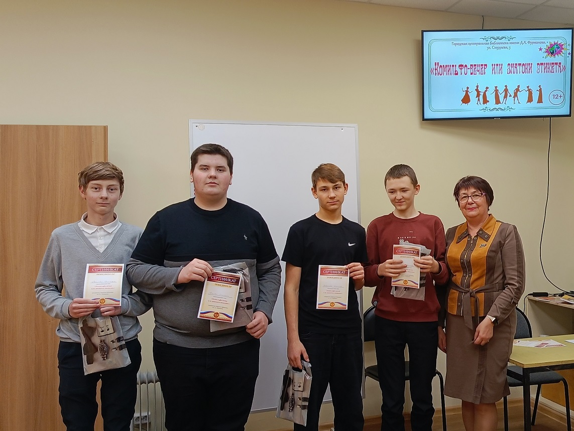 11 декабря в Городской центральной библиотеке в рамках проекта «Пушкинская карта» прошла интеллектуально-познавательная игра «Комильфо-вечер или знатоки этикета», в которой приняли участие учащиеся МОУ СШ № 3. Участники игры познакомились с нормами поведения в обществе, основными правилами этикета, который всегда являлся своеобразным кодексом хороших манер, а также побывали в различных жизненных ситуациях.