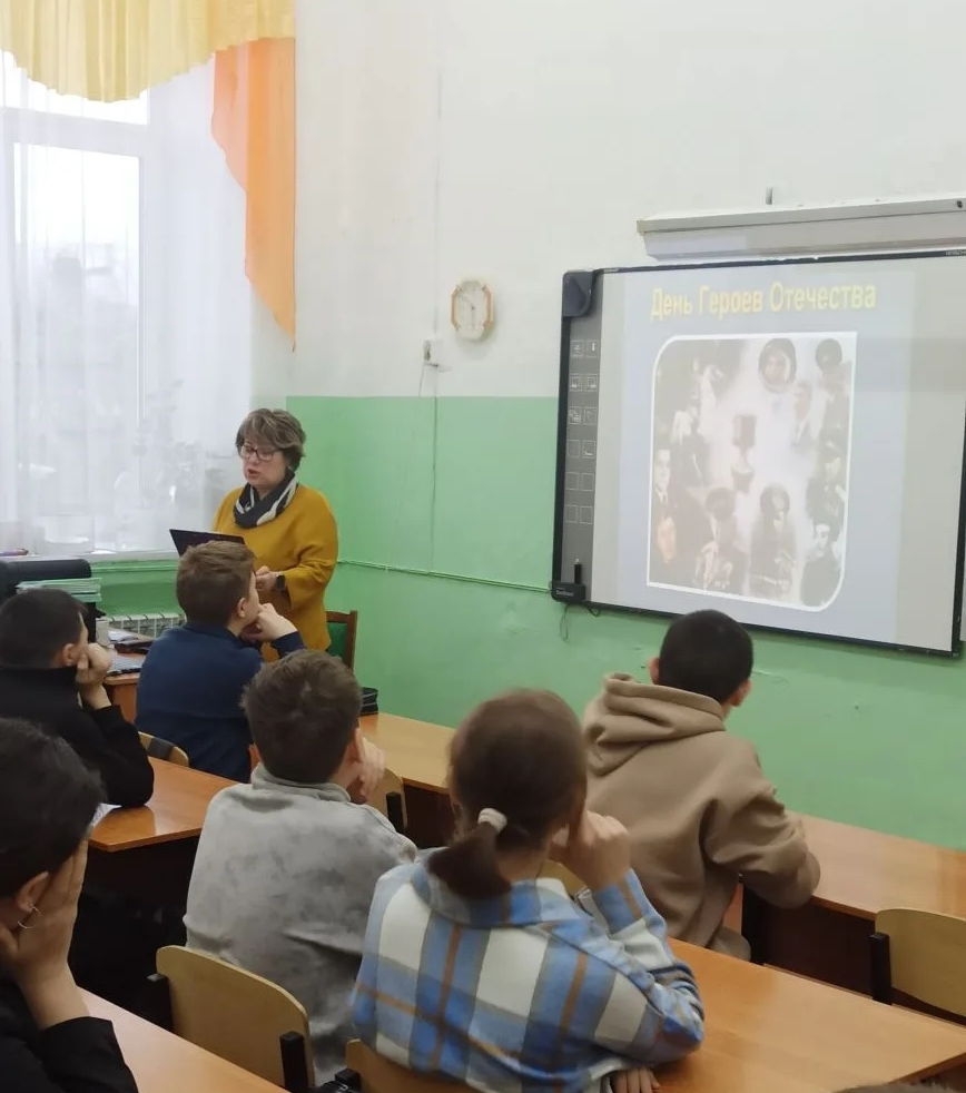 В России ежегодно отмечают День Героев Отечества — праздник с глубокими историческими корнями. 9 декабря 1769 года Екатерина Великая учредила орден Святого Георгия Победоносца за особые доблесть и отвагу в бою. Этот день вплоть до революции был Днем Георгиевских кавалеров. Традицию чествовать людей, посвятивших жизнь служению Родине, возродили в 2007 году. В рамках этой даты сотрудник Городской центральной библиотеки для учащихся 8 класса школы №8 провела историко-патриотический час «Честь и слава на все времена».